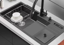 - Chất liệu: Inox phủ nano cao cấp, vòi lõi đồng