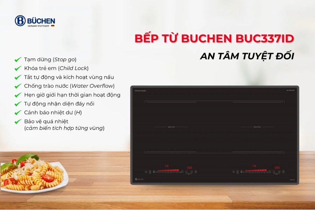 - Bảo vệ quá nhiệt (cảm biến nhiệt độ tích hợp trong từng vùng nấu)