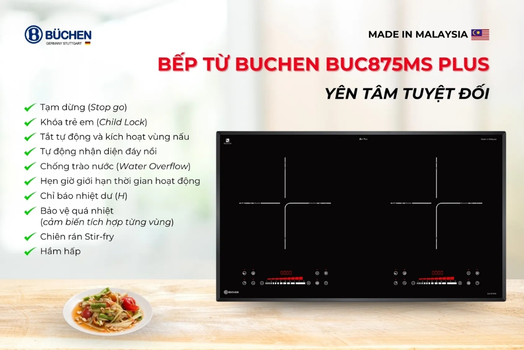- Bảo vệ quá nhiệt (cảm biến nhiệt độ tích hợp từng vùng nấu)