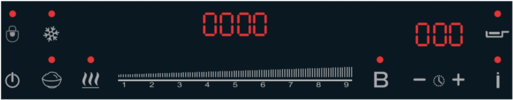 Cảnh báo nhiệt dư “H” riêng biệt cho từng vùng nấu xuất hiện khi nhiệt độ trên mặt kính sau khi tắt bếp lớn hơn 60°C