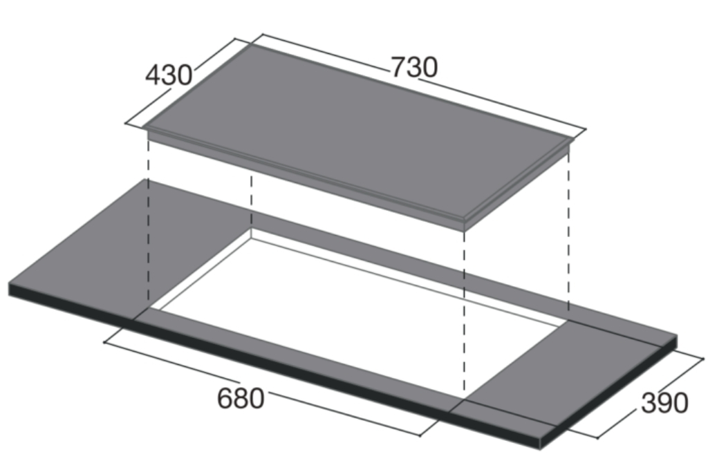 Kích thước khoét đá: 680x390mm
