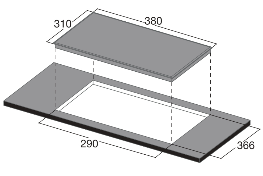 Kích thước khoét đá: 366x290mm