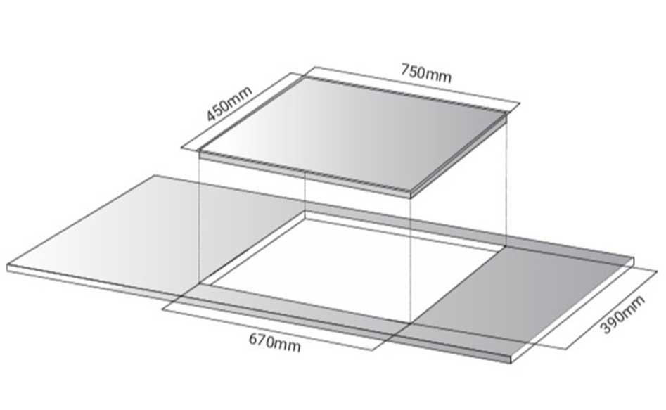 - Kích thước bếp: 750 x 450mm