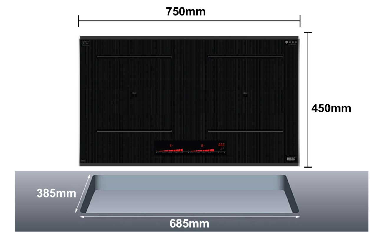 - Kích thước khoét đá: 685 x 385mm