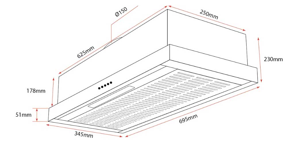 - Máy hút mùi âm tủ thiết kế phẳng nguyên khối 70cm