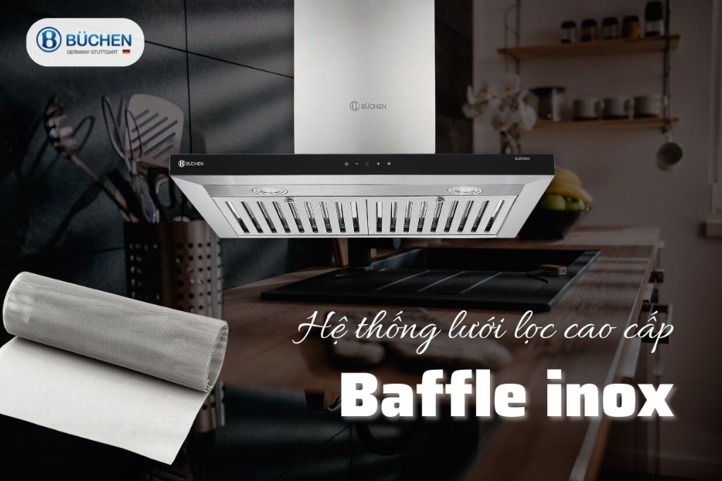 - Lưới lọc Baffle inox cao cấp lọc dầu mỡ hiệu quả, tăng tuổi thọ cho động cơ