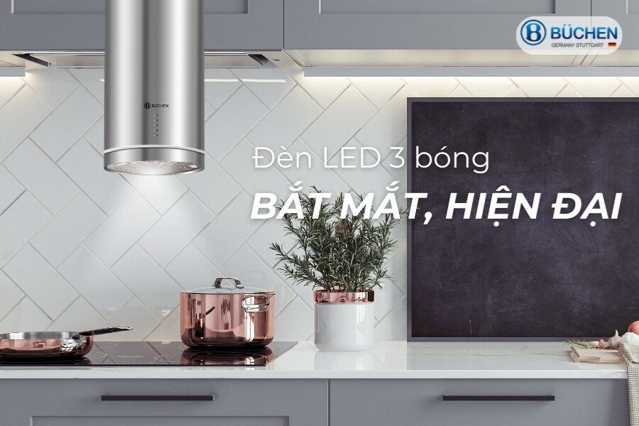 Đèn LED 3 bóng siêu sáng kết hợp dải LED tròn bo viền, chiếu sáng toàn diện, tạo điểm nhấn sang trọng cho gian bếp.