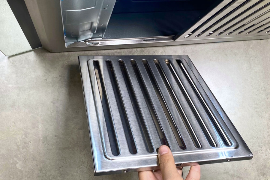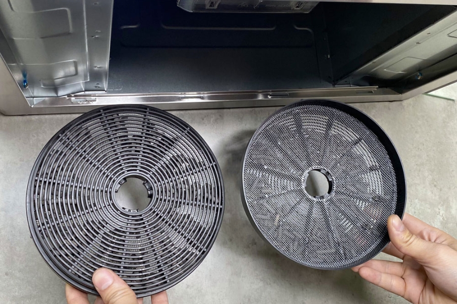 Lưới lọc kép inox 304 kiểm soát dầu mỡ, hơi nước hiệu quả, bền sáng chống gỉ, dễ vệ sinh, kết hợp than hoạt tính tăng khả năng khử mùi.