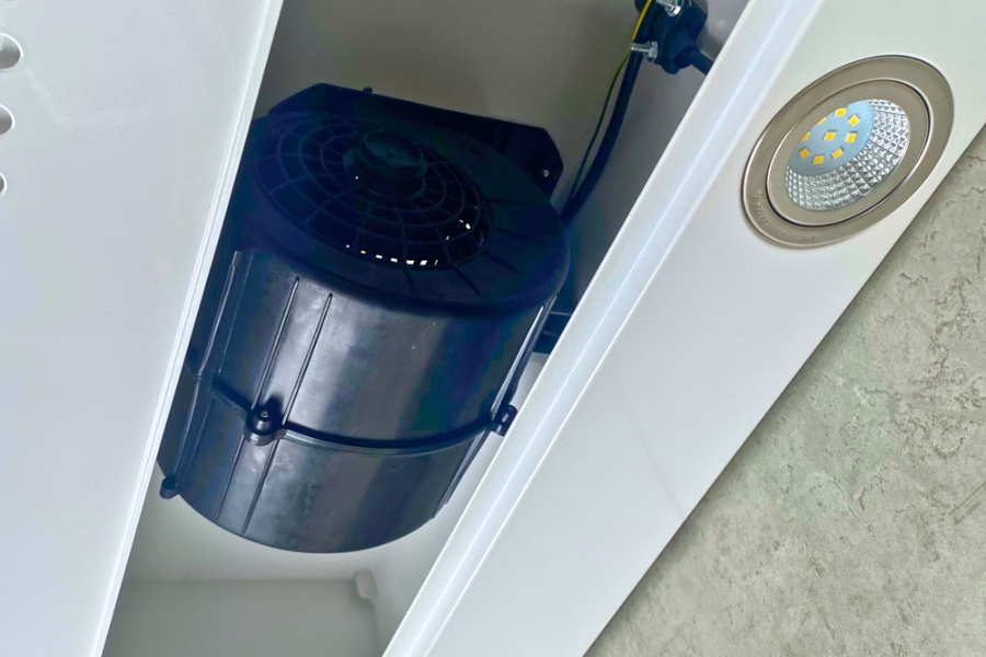 Động cơ hộp kín Sealed Box công suất 850m³/h, vận hành êm ái dưới 48dB, tiết kiệm điện năng và nâng cao hiệu suất.