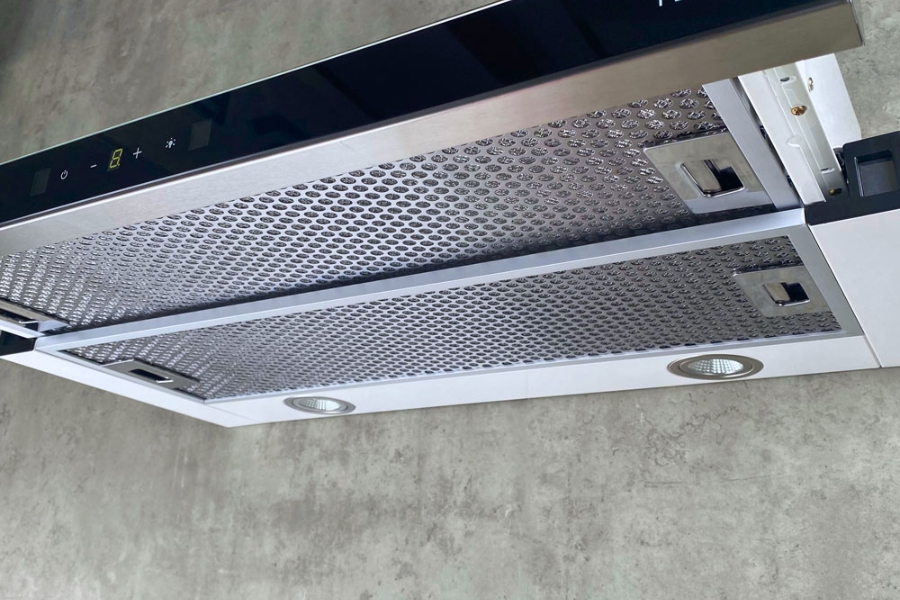 Lưới lọc Inox & Aluminum nhiều lớp chống gỉ, lọc dầu mỡ hiệu quả, dễ vệ sinh, kết hợp than hoạt tính tăng cường khử mùi.