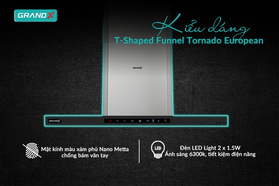 Máy hút mùi GX H70C68B mang phong cách T-Shaped Funnel Tornado European hiện đại, kết hợp thiết kế áp tường mạnh mẽ, thanh lịch, phù hợp đa dạng không gian bếp.