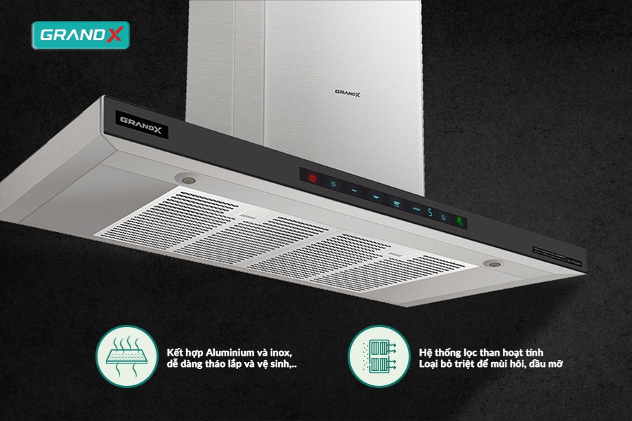 • Hệ thống than hoạt tính lọc sạch khói, dầu mỡ, giữ bếp luôn trong lành.