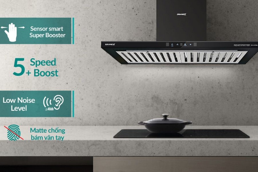 • Công suất hút mạnh ±980m³/h, loại bỏ nhanh khói và mùi khó chịu.