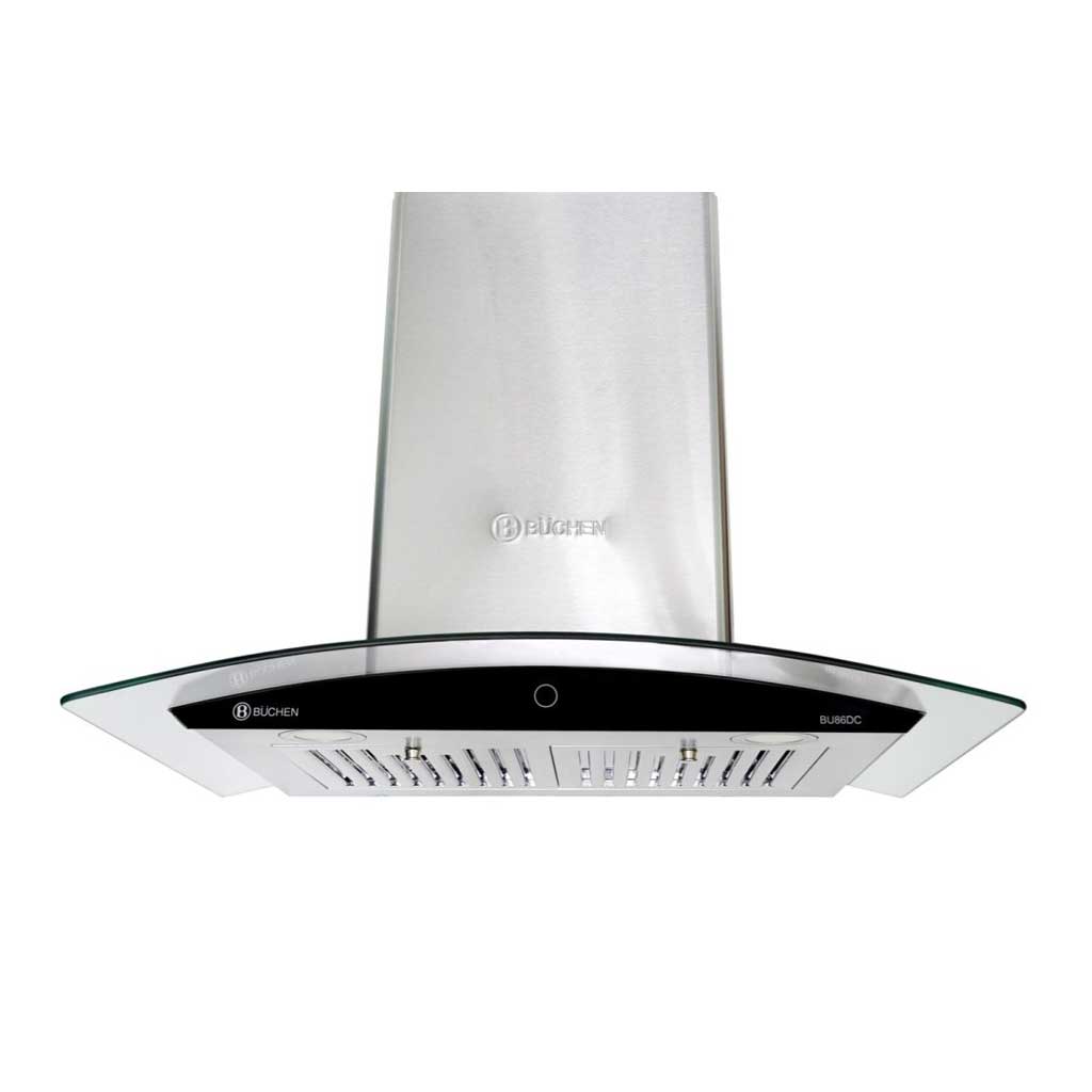 Máy hút mùi toa kính Buchen BU86DC thiết kế kiểu toa máy gắn tường, động cơ 1 chiều. Bảng điều khiển cảm ứng 9 tốc độ hiện đại, máy trang bị đèn Led 2 bóng, lưới lọc Baffle (inox), giúp ngăn tối đa được hơi dầu mỡ vào bên trong máy, giúp tăng tuổi thọ của động cơ.