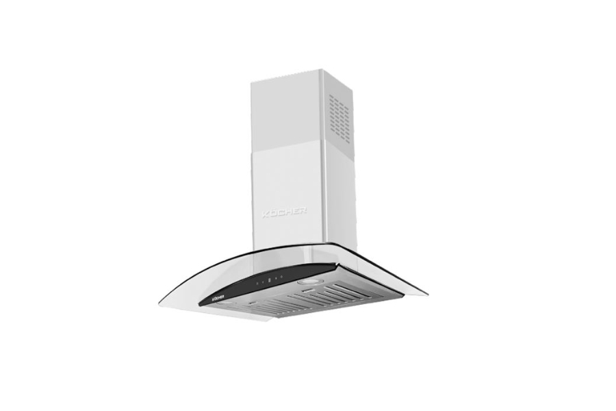 Hút mùi kiểu dáng kính cong tạo điểm nhấn mềm mại, mang lại vẻ thanh thoát và sang trọng cho không gian bếp.