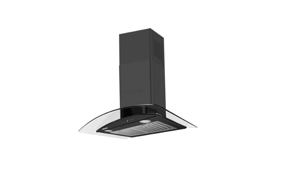 Hút mùi kiểu dáng kính cong tạo điểm nhấn hiện đại, giúp không gian bếp trở nên tinh tế và thanh thoát hơn. Kiểu thiết kế cong mềm mại giúp luồng khói được thu gom hiệu quả hơn.
