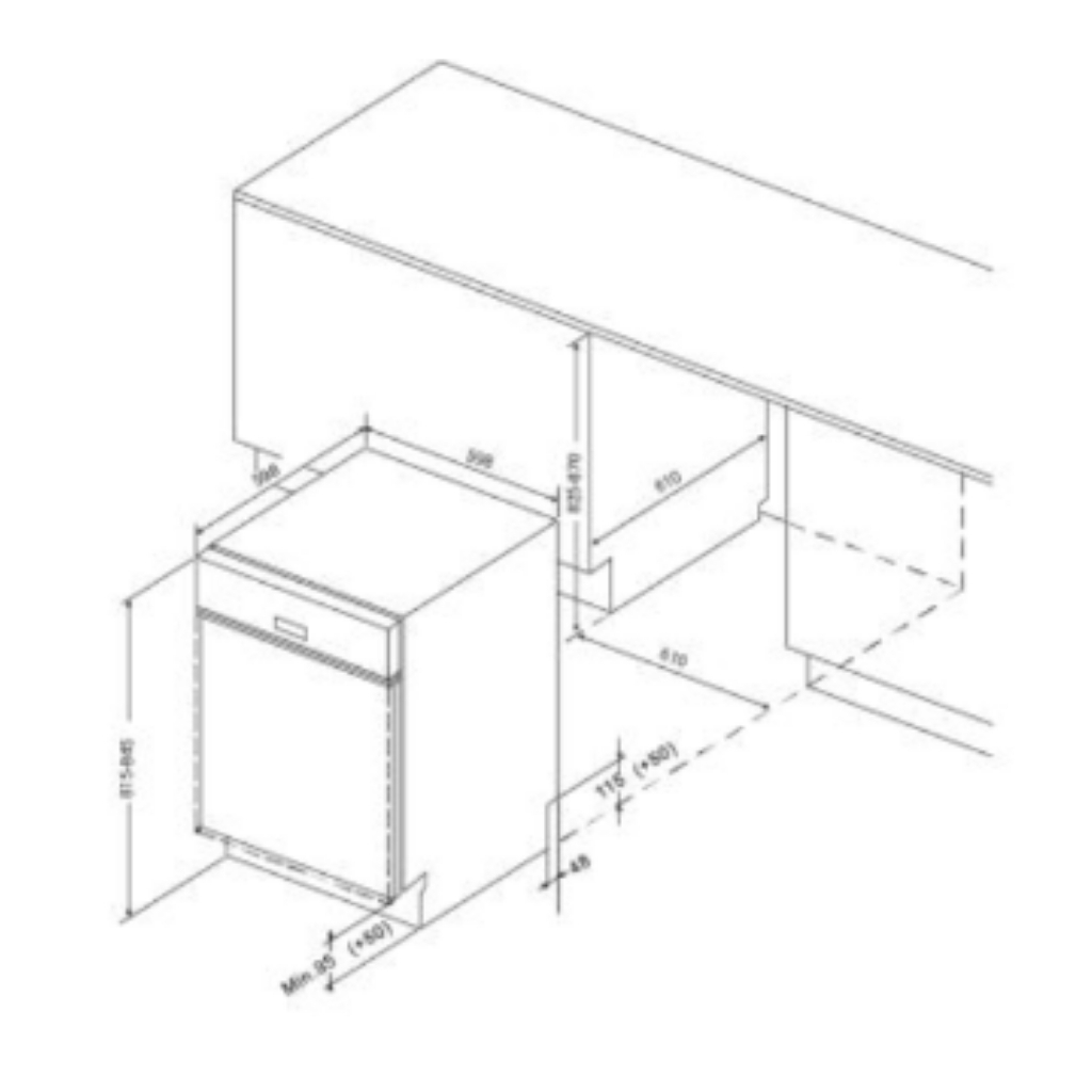 • Kích thước khoét âm tủ: 610R × 610S × 820–850C mm