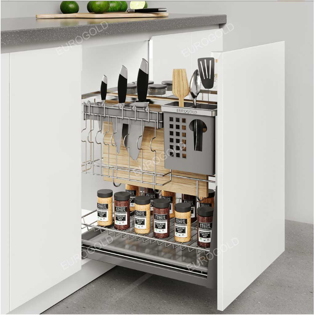 Giá dao thớt Eurogold inox 304 nan dẹt cao cấp và Ray giảm chấn có 5 kích thước khách nhau