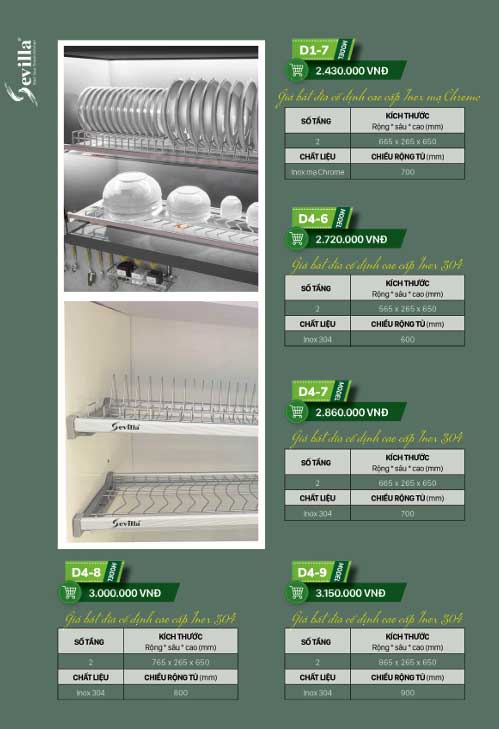 Giá bát cố định Sevilla D4-6/D4-7/D4-8/D4-9 Inox 304