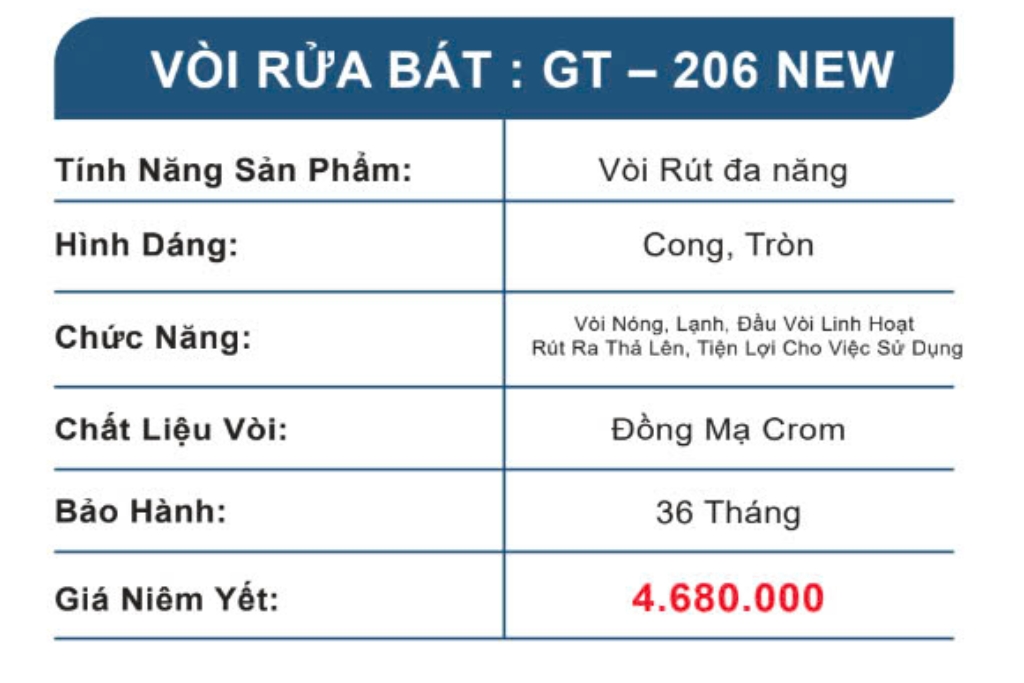 VÒI RỬA BÁT: GT – 206 NEW